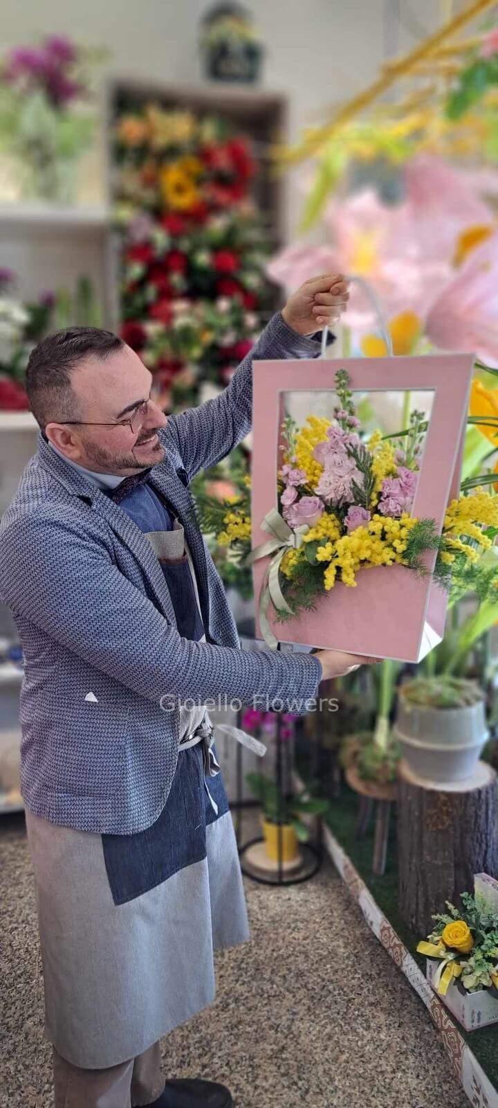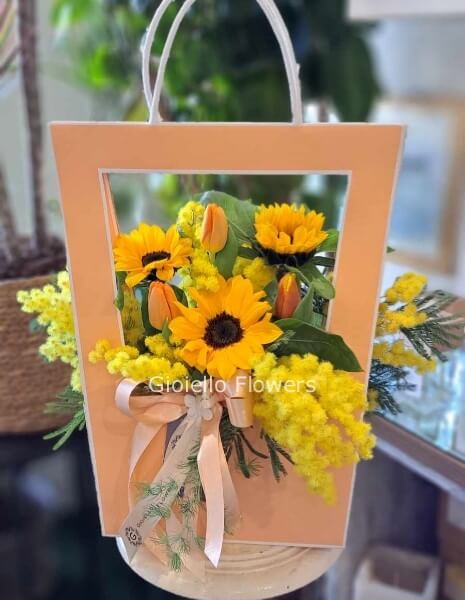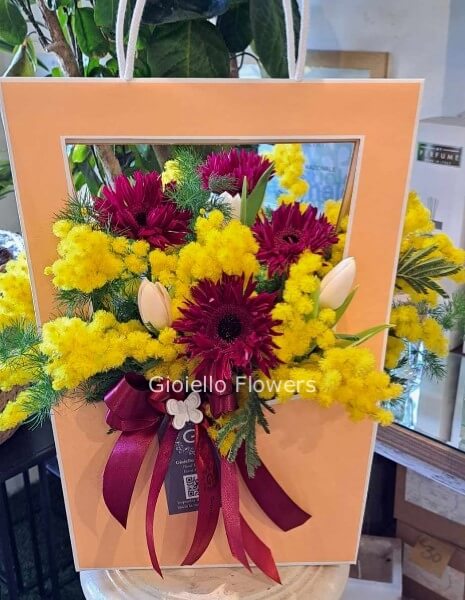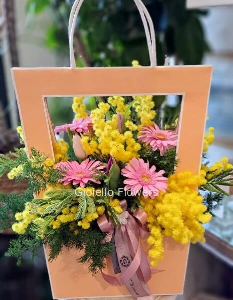 Omaggio originale e di tendenza da regalare a colleghe, amiche o parenti. MIMOSA DISPONIBILE DAL 5 AL 9 MARZO Essendo realizzata a mano potrebbe differire dalla foto, in base al materiale disponibile in Fioreria e all'estro del Floral Designer Francesco Gioiello. Saremo ben lieti di essere comunque contattati per soddisfare le Tue particolari esigenze. La confezione sarà consegnata dal fiorista direttamente al destinatario. Quanto sopra fatte salve le diverse disposizioni che potrai inserire nel campo note, presente nella pagina di conclusione dell'ordine (non vincolanti se non concordate prima con noi).