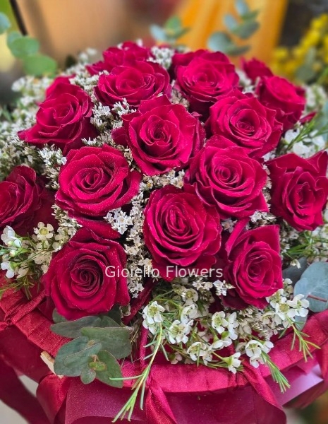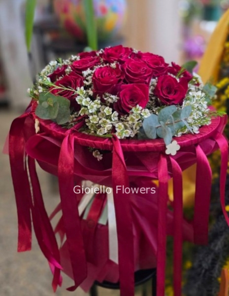 Questo esclusivo bouquet, ideato dal Floral Designer *Francesco Gioiello*, fonde la passione di *18 rose rosse* selezionate con il simbolismo magico dell'*acchiappasogni*.
