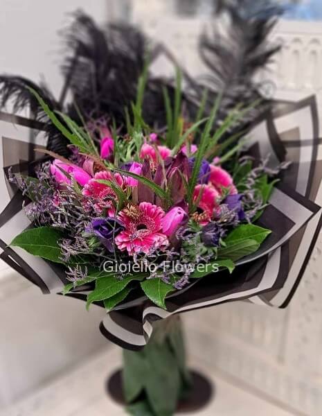 Un omaggio unico e particolare di gradevole delicatezza, nato dall'ispirazione e la professionalità del Floral Designer Francesco Gioiello, realizzato con varie tipologie di fiori, verde decorativo ed elementi complementari. Personalizzabile nelle tonalità desiderate da concordare tramite contatto telefonico.