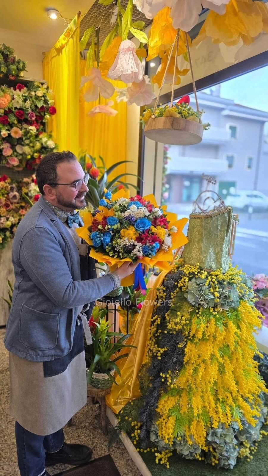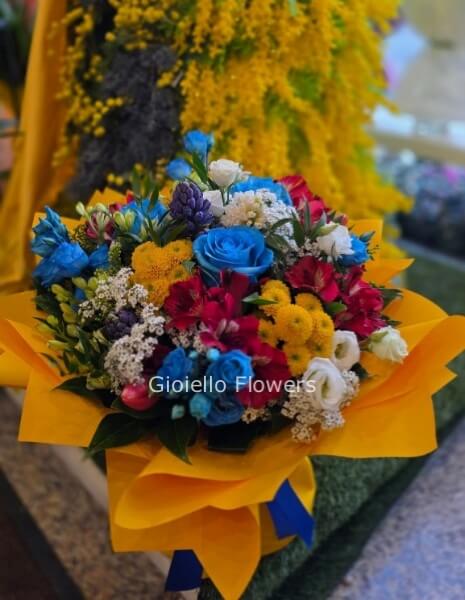 Il Bouquet Armonia è una creazione esclusiva nata dal desiderio di racchiudere la luce del sole e la profondità del mare in un unico omaggio floreale. Non è un semplice accostamento di colori: ogni fiore di stagione è scelto e posizionato secondo uno studio meticoloso di equilibrio cromatico. Il giallo vibrante e le sfumature di blu e azzurro non sono accostati per caso, ma armonizzati dal tocco del nostro Floral Designer Francesco Gioiello per creare un’emozione visiva che parla direttamente al cuore. Dettagli del Prodotto: * Fiori: Selezione pregiata di fiori freschi di stagione (es. Girasoli, Delphinium, Ortensie o Rose, a seconda della disponibilità). * Stile: Moderno, luminoso e armonioso.