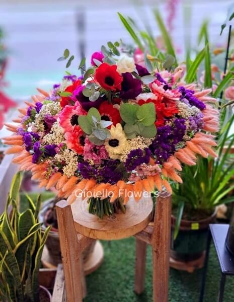 Ideale per qualsiasi occasione. Dalle allegre e colorate tonalità della stagione.Interamente realizzato a mano con struttura circolare e fiori in base alla stagione.