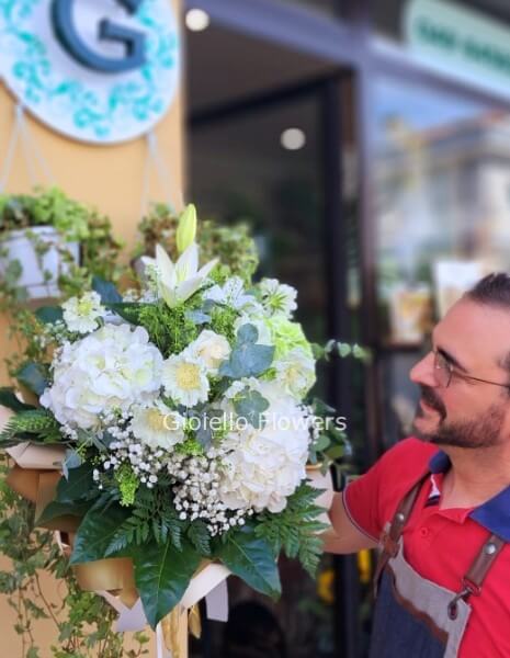 | Bouquet con ortensie e fiori di stagione tonalità del bianco Cod. 103362 | a partire da