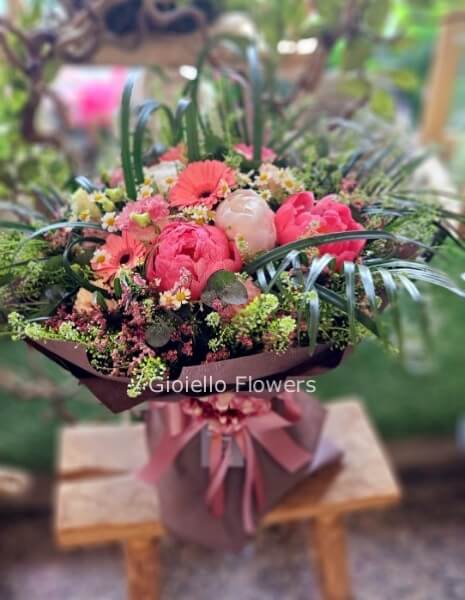 | cod. 103327 Bouquet artistico con peonie tonalità del rosa |   Prodotto non disponibile  |