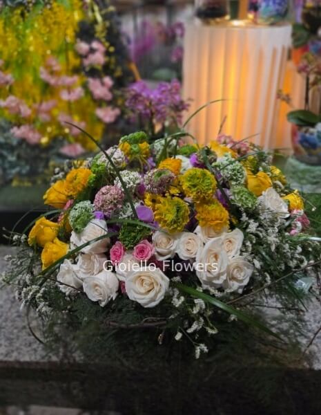 NOTA IMPORTANTE: Nella realizzazione dell’omaggio ci impegniamo ad utilizzare fiori e piante di qualità e faremo tutto il possibile per rispecchiare il prodotto scelto quanto a forma e colori ma occorre tenere presente che la dimensione dell’omaggio e il numero dei fiori contenuti dipendono dai prezzi di mercato che sono notoriamente molto diversi per stagionalità, ricorrenze ed eventi e variabili anche nell’arco della stessa giornata. Al fiorista sono permesse sostituzioni di uno o più elementi per difficoltà di reperibilità sul mercato e/o deperibilità del prodotto. Tali sostituzioni si intendono sempre accettate dal cliente ordinante a condizione che il prodotto offra almeno lo stesso rapporto qualità/prezzo. Puoi contattarci per concordare quanto ritieni necessario.