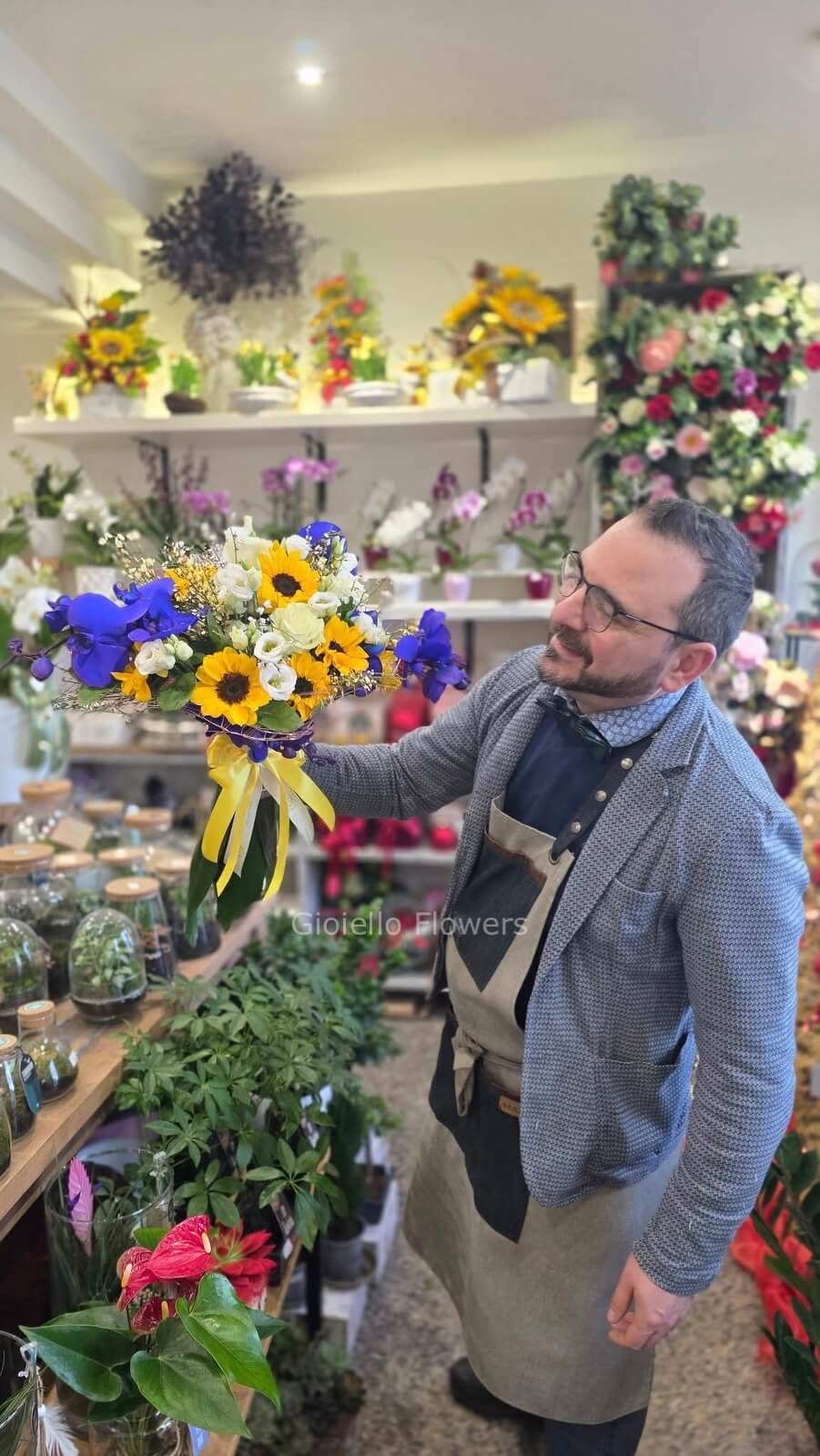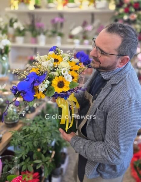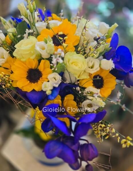 * Contrasto Complementare: L’energia solare dei Girasoli incontra la profondità magnetica delle Orchidee Blu, creando un gioco di colori che cattura lo sguardo.