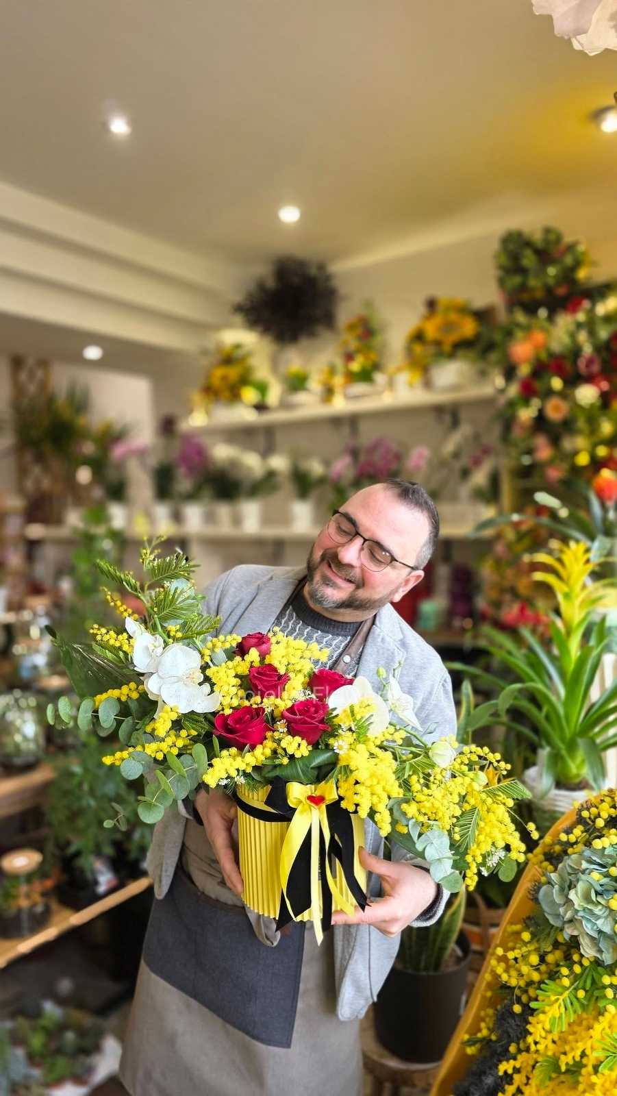 * Grande: Una presenza scenica superiore, dove il volume delle rose e della mimosa crea un impatto visivo ricco e armonioso.