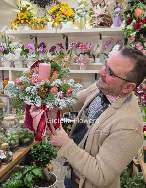 Scegli il nostro fiorista a Montegrotto Terme per rendere le tue festività ancora più speciali con la nostra Cappelliera natalizia.