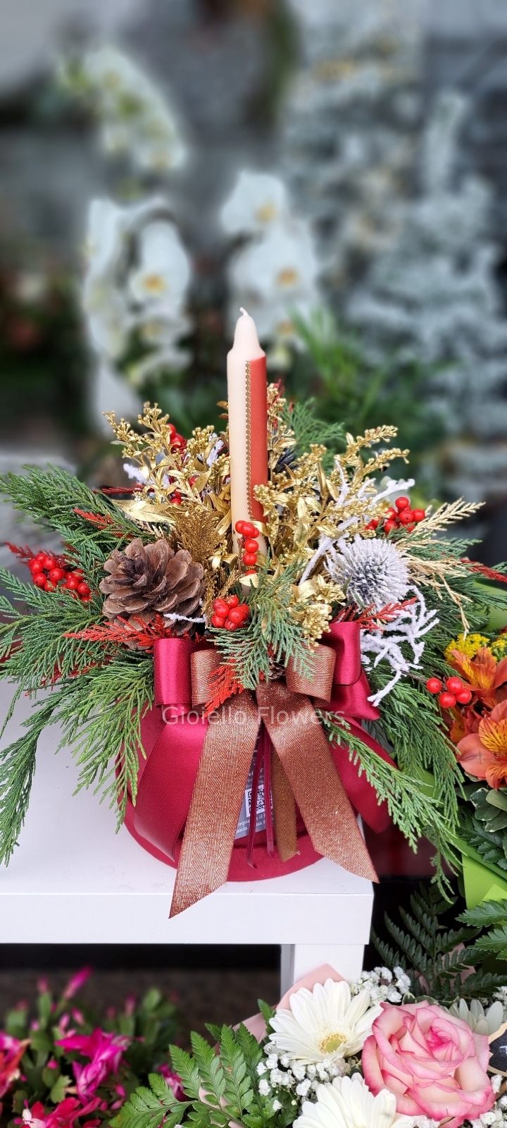 Scegli il nostro fiorista a Montegrotto Terme per rendere le tue festività ancora più speciali con la nostra Cappelliera natalizia.