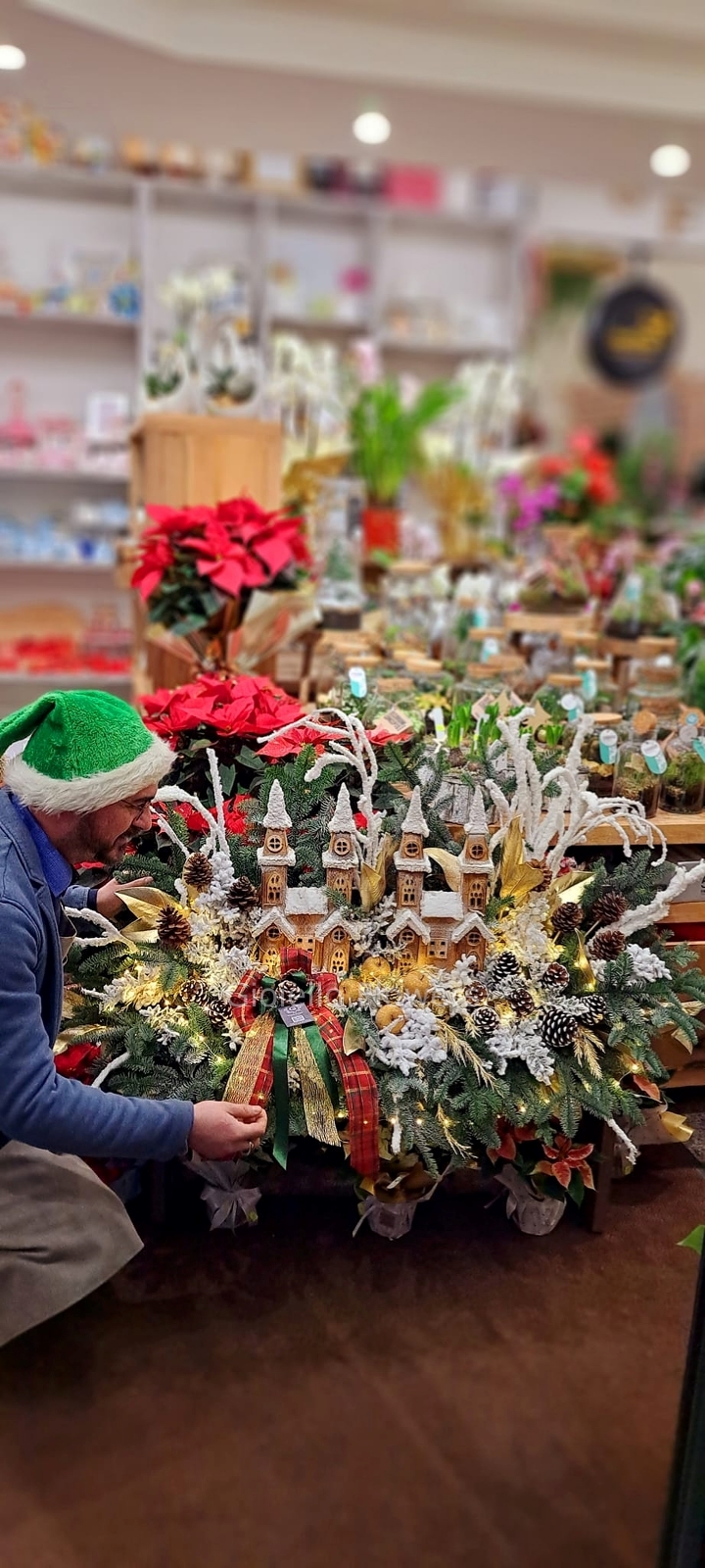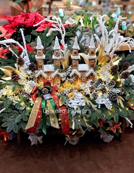 Non perdere l'occasione di portare gioia e colore nella tua casa durante le festività: scegli la nostra composizione e festeggia con stile!Composizione natalizia grande con fiori rossi e bianchi, bacche , abete e candele.