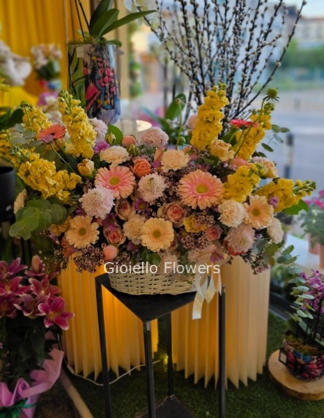 Ogni cesto è un capolavoro di freschezza e bellezza, composto con fiori selezionati di alta qualità che portano un tocco di natura direttamente nella tua casa.