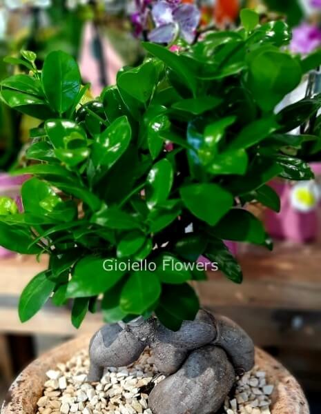 Pianta bonsai, varietà ficus extra con vaso